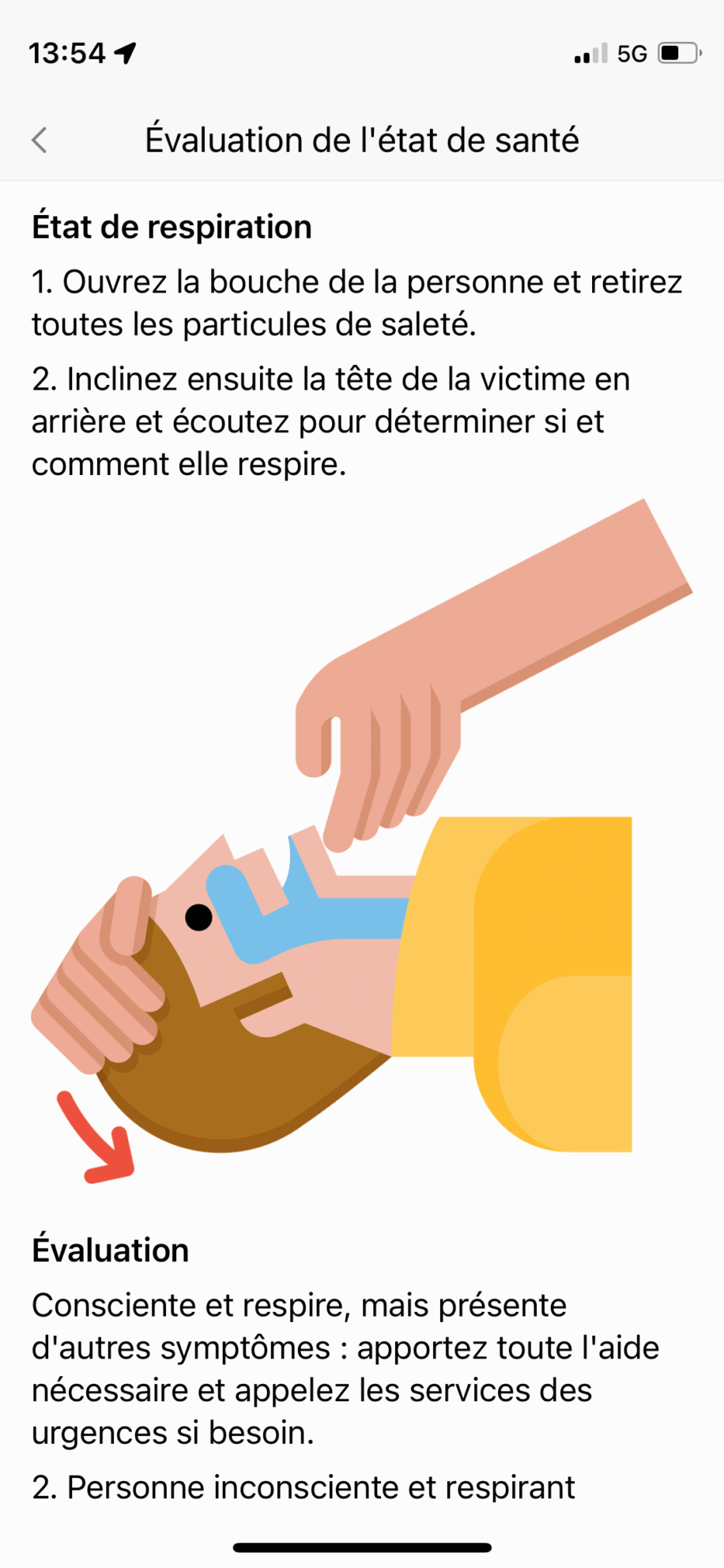 Ce que vous trouverez dans la section Premiers secours